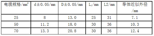 (1)確定壓接接線螺栓內(nèi)徑和外徑。查閱電纜導(dǎo)體近似外徑并結(jié)合電纜導(dǎo)體實(shí)測(cè)數(shù)據(jù),依據(jù)電纜導(dǎo)體插入應(yīng)略緊且兼顧方便插入的原則,確定壓接接線螺栓內(nèi)徑d;依據(jù)壓接接線螺栓內(nèi)徑和電纜規(guī)格,計(jì)算推導(dǎo)壓接接線螺栓環(huán)形面積,根據(jù)JB/T 2436.2-1994標(biāo)準(zhǔn),確定壓接接線螺栓外徑D。
