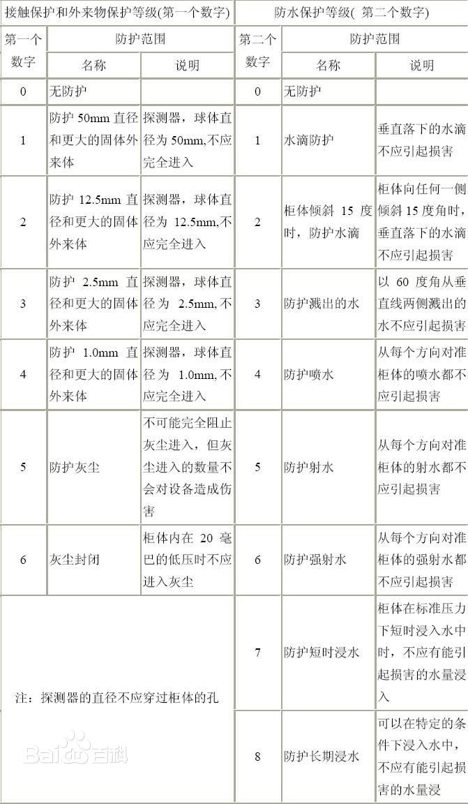 (2)防固體能力的第6級稱為 “嚴(yán)密防塵”,即完全不允許塵埃進(jìn)入電機(jī)內(nèi)部。