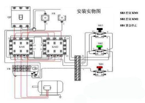 對于這種控制線路,當要改變電動機的轉(zhuǎn)向時,就必須先按停止按鈕SB1,再按反轉(zhuǎn)按鈕SB3,才能使電機反轉(zhuǎn)。如果不先按SB1,而是直接按SB3,電動機是不會反轉(zhuǎn)的。