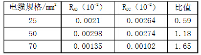根據(jù)標(biāo)準(zhǔn)需檢測(cè)A、B和B、C間電阻(分別為如、R彤),端頭壓接部位的電阻與所連接同長(zhǎng)度導(dǎo)線電阻的比值為:(2RAB一RBC)/RBC,壓接電阻檢測(cè)結(jié)果如圖所示。