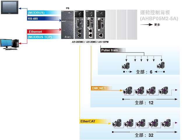 提供 EtherCAT、DMCNET 與 Pulse-train 等運(yùn)動控制接口