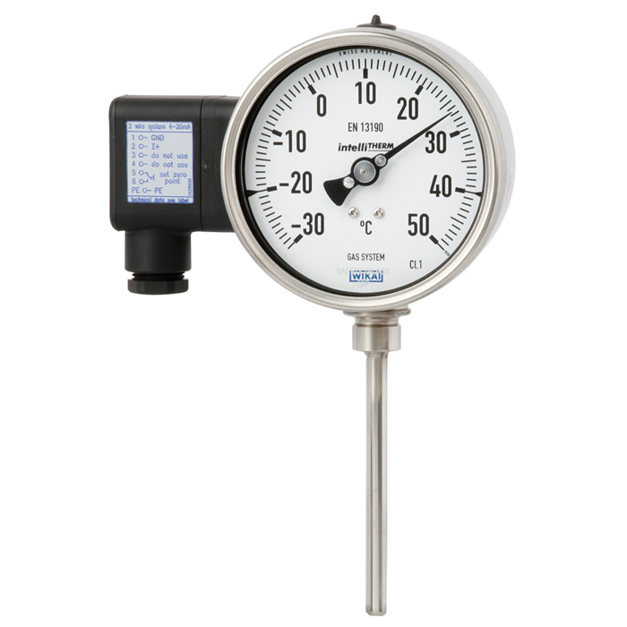 該型號溫度計在高質(zhì)量機械式溫度測量儀表中集成了威卡(WIKA)電子變送器,既有電子信號的傳輸又具備就地機械顯示的優(yōu)勢。