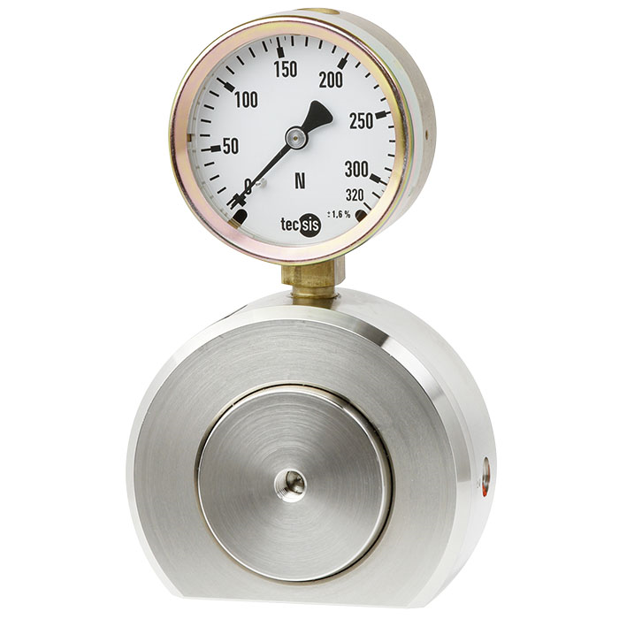 該產(chǎn)品的測量采用了液壓原理:當(dāng)力作用于活塞時,液壓壓力增大,其液壓壓力可以顯示在與其相連的儀表上,該儀表的刻度可根據(jù)客戶需求定制,如N、kN、kg、t。