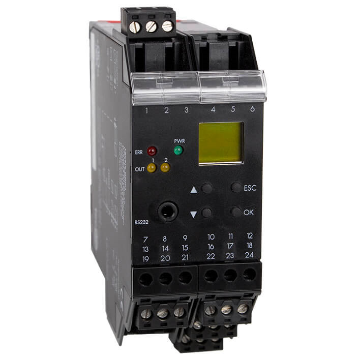 2或3線制的傳感器以及帶0/4 ... 20 mA信號的有源電源都可與該開關(guān)相連接。輸入端有斷線和電纜短路監(jiān)測。輸出端則有兩個繼電器和一個0/4…20 mA電流輸出。電流輸出是可自由調(diào)節(jié)。測量值通過小型LC顯示器顯示 — 17種不同的單位,如可選kg、t、N、bar等。
